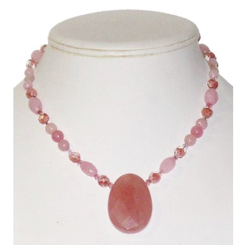 Swarovski crystals, rose quartz beads, faceted jade and czech glass beads. It